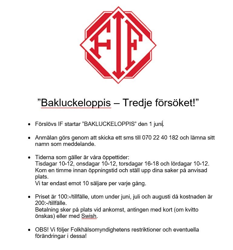 Förslövs IF startar "Bakluckeloppis" - Tredje Försöket! Förslövs IF 8 maj 2021 0kommentarer