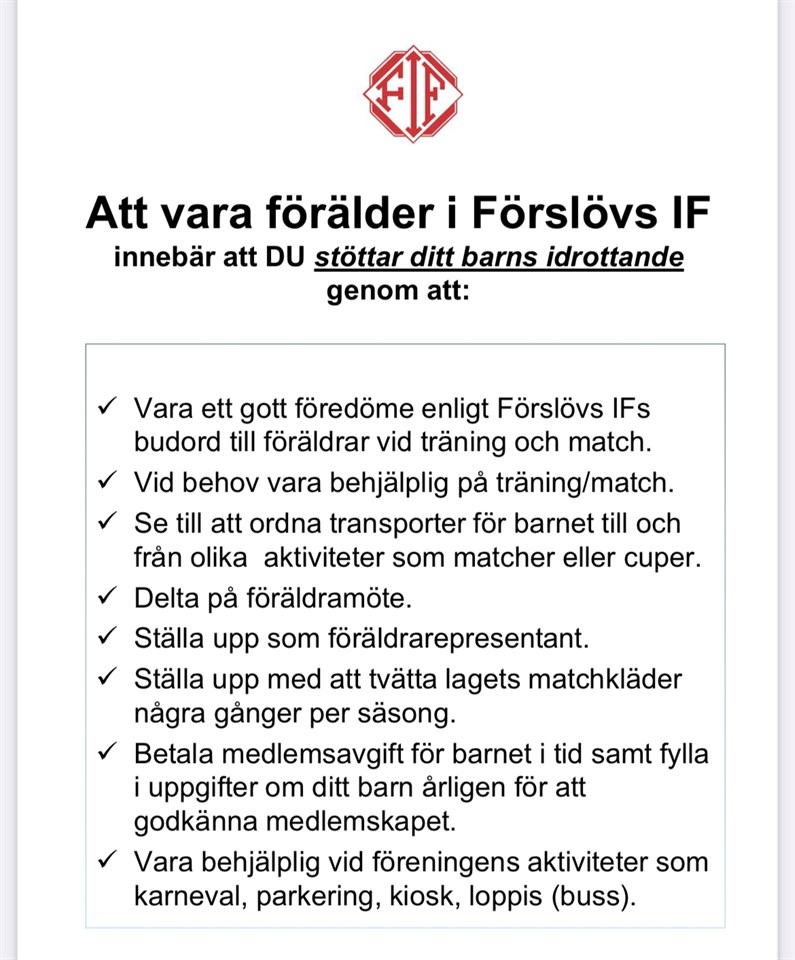 Hej laget! Som vi har längtat! På torsdag kör vi igång igen med träningar och vi tränare ser så mycket fram emot att få träffa er alla i samlad trupp igen! Här kommer 5 punkter att tänka på inför höstens spel: 1. På lördag 19/8 stundar höstens första match och den är hemma i Förslöv mot Vejby. 2. Vi är några föräldrar som tagit oss an tvätten innan, men i höst kommer det rulla en tvättlista. Noga är att vi följer tvättråden i väskan och kommer åter med kläderna i tid till nästa match. Även pass som tillkommer i kiosken kommer vi dela ut personligen då vi får dem till oss gång för gång. Kan man inte sitt tillfälle (t.ex om ens barn inte deltar i tilldelad match) ansvarar man själv för byte med annan förälder. Tvättlista: 19/8 Reem Vejby 26/8 Anila ÄFF 3/9 Svea Skälderviken 9/9 Felicia Eskilsminne 17/9 Elise Eket 24/9 Saga Vedby/Rönne 1/10 Novalie Grevie 7/10 Isabelle Vejby 15/10 Lily ÄFF 3. Poolparty har varit klurigt på grund av vädret, kanske vi kan få till det om solen håller sig framme, men annars hoppas vi också snart kunna ordna en lagkväll på kulan och tar tacksamt emot föräldrars hjälp att arrangera den. 4. Den viktigaste punkten: Vi vill att ni pratar med era tjejer hemma om hur de pratar till varandra. Vi har fullkomlig nolltolerans mot fula ord och tilltal och kommer fortsätta jobba aktivt för att ha glada och trygga barn i vårt lag. Vi önskar ert vuxna deltagande på träningar och matcher så mycket det är möjligt och är beroende av en god dialog med er! Se utdrag ur policyn som medsänds om vad det innebär att vara förälder i FIF. Välkommen också att ha en öppen dialog med oss tränare, vi vill ge era barn bästa möjliga tid i Förslövs IF. 5. Inomhusträningarna börjar tidigast första veckan i oktober, men kommer vara kl 18:30-19:30. Mer info kommer närmre inpå!